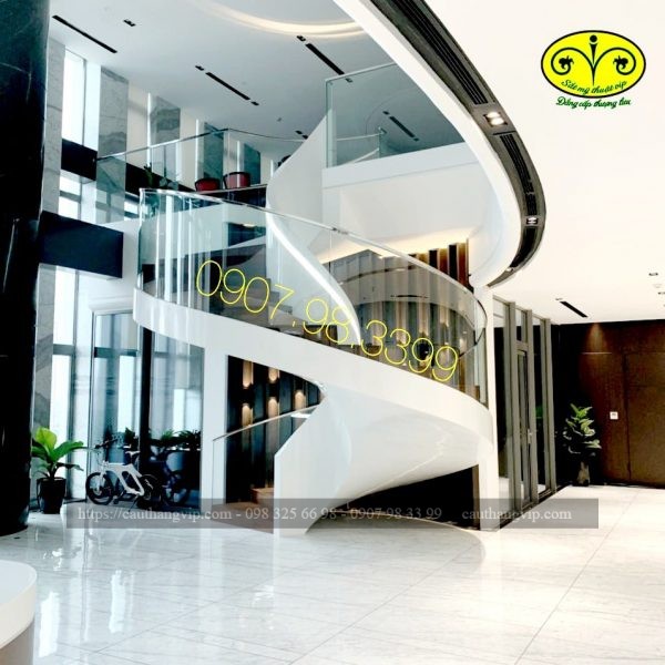 Cầu thang xoắn ốc cao cấp kính đẹp cao cấp XT14